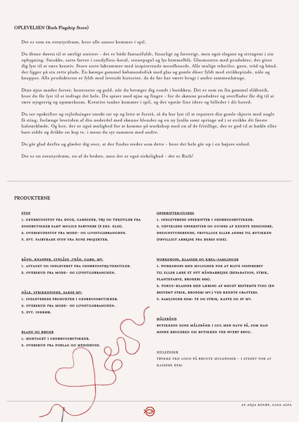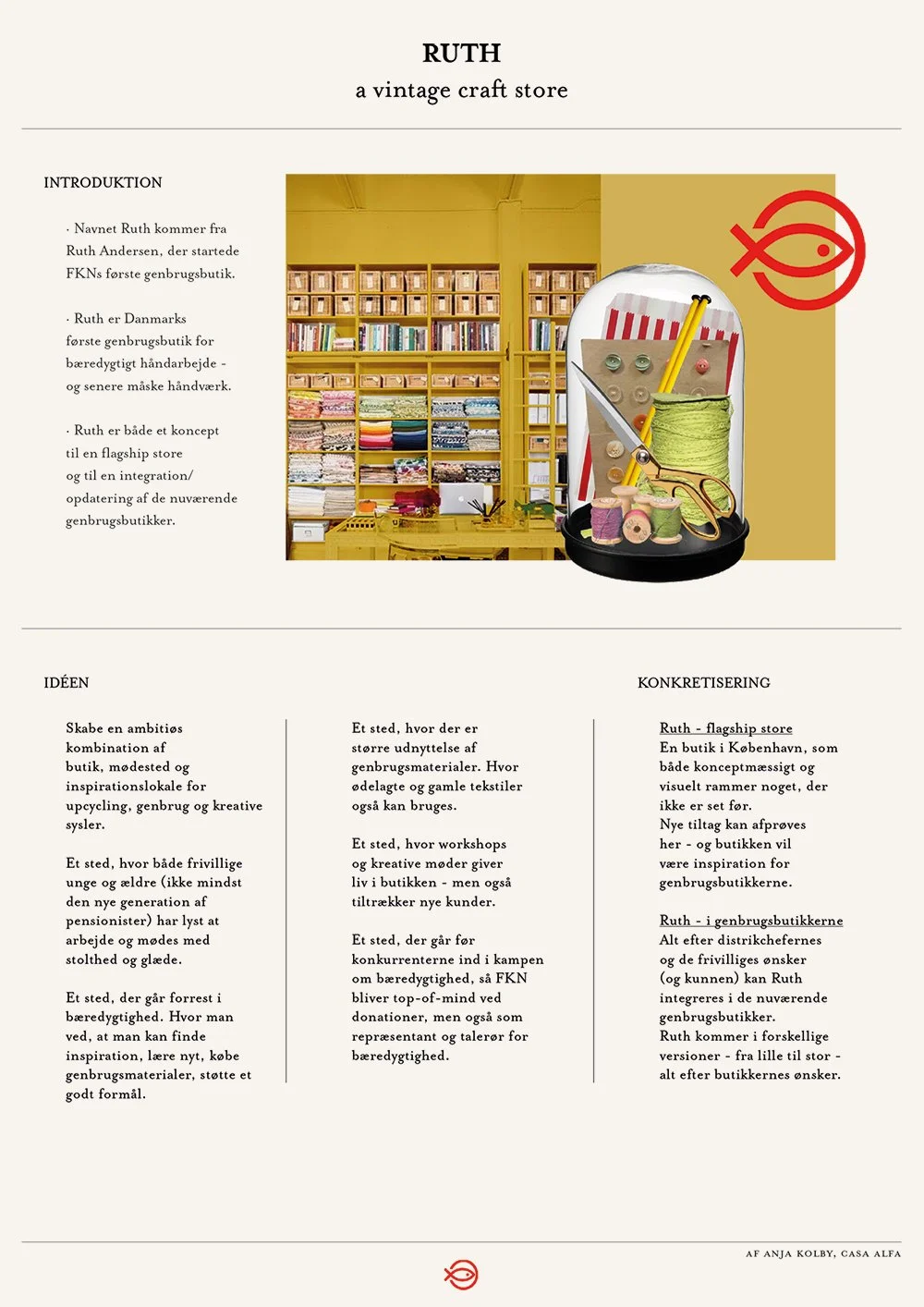 Konceptet var inspireret af kvinden, der startede Danmarks første genbrugsbutik, Ruth, og kunne lanceres både som flagship store, men også som afdelinger i de enkelte genbrugsbutikker landet over.